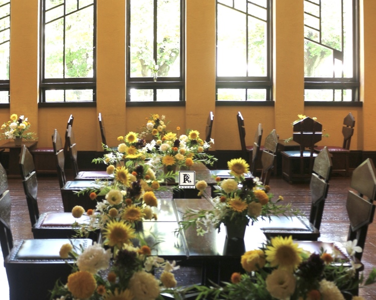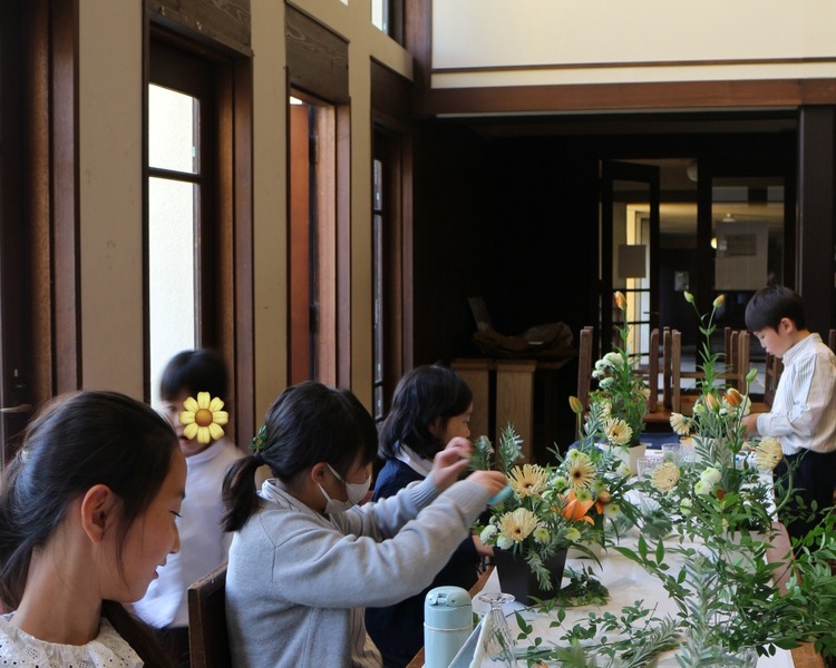 「明日館に花を飾る」